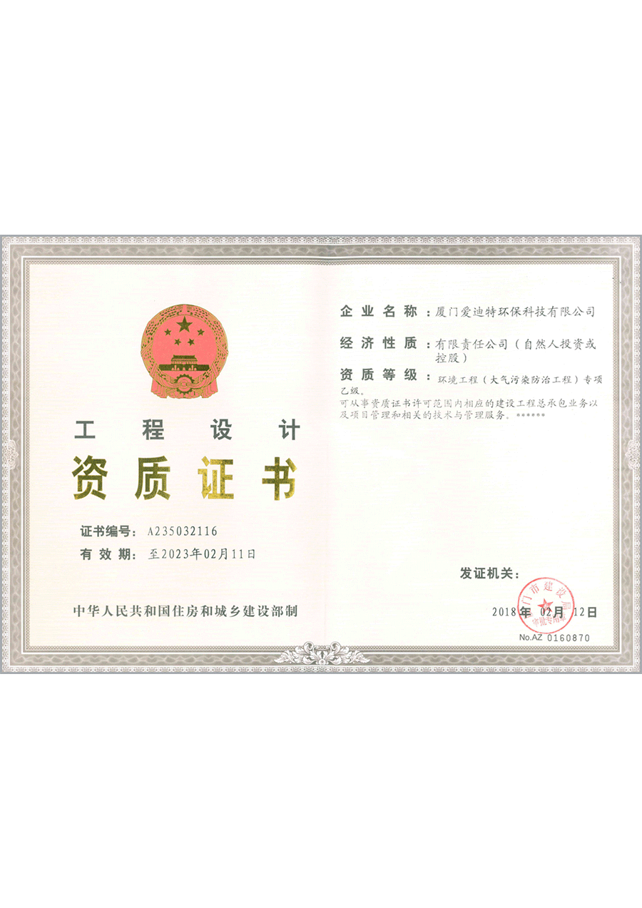 環(huán)境工程(大氣污染防治工程)專項乙級資質